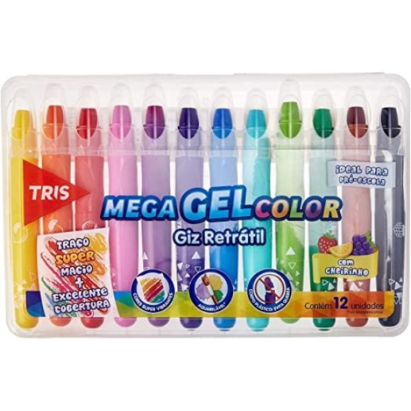 Giz Retrátil,Multicor, pacote de 12 Cores